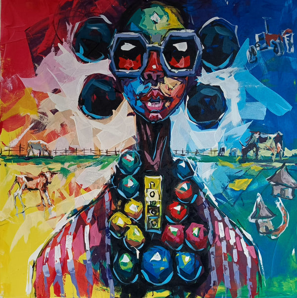 Meet the Bantu Knots & Sunnies--the Sabiala that doesn’t whisper style — it SHOUTS it across the street. This one-of-a-kind Sabiala piece is a wearable canvas featuring original artwork by the brilliant Yegonizer — a visual storyteller whose bold, unapologetic aesthetic turns garments into gallery statements.